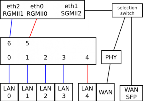 UPDATE: eth0 is connected to the switch port 5 and eth2 is connected to the switch port 6.